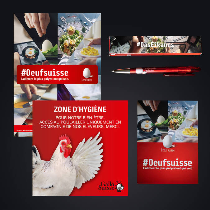 - GalloSuisse établit le concept marketing de base de «L'œuf suisse» et met en œuvre les mesures telles que la publicité télévisée et la participation aux foires et salons.