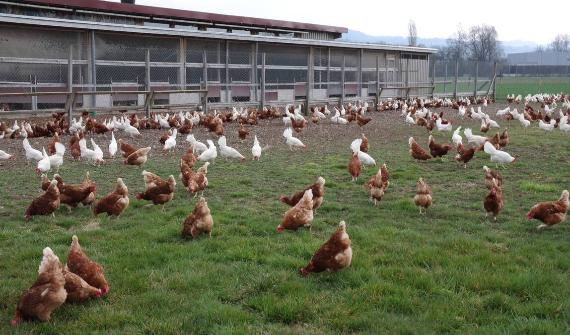 In allen Schweizer Ställen können sich die Hennen frei bewegen. Die meisten können zusätzlich im geschützten Aussenklimabereich scharren, picken und im Sand baden, gut geschützt vor Wind, Wetter und Raubvögeln. Ausserdem haben mehr als 85 Prozent der Hennen Zugang zu einer Weide. Die Käfighaltung ist in der Schweiz seit 1991 verboten; weltweit werden noch immer 90 Prozent der Legehennen in Käfigen gehalten.